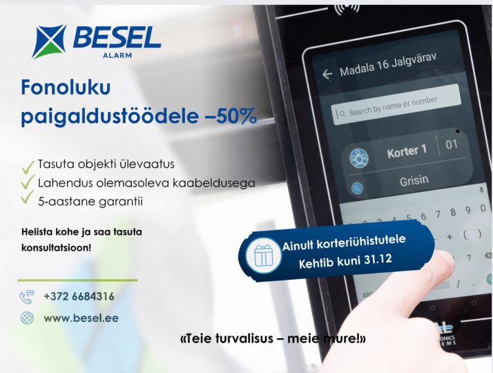 Programmi raames kehtib 50% soodustus paigaldustöödele fonolukusüsteemi paigaldamisel (pakkumine kehtib ainult korteriühistutele).
