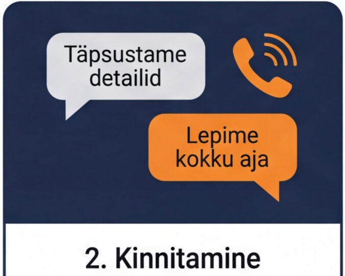2. Kinnitamine Täpsustame detailid, lepime kokku aja ja anname esialgse hinnaprognoosi. |